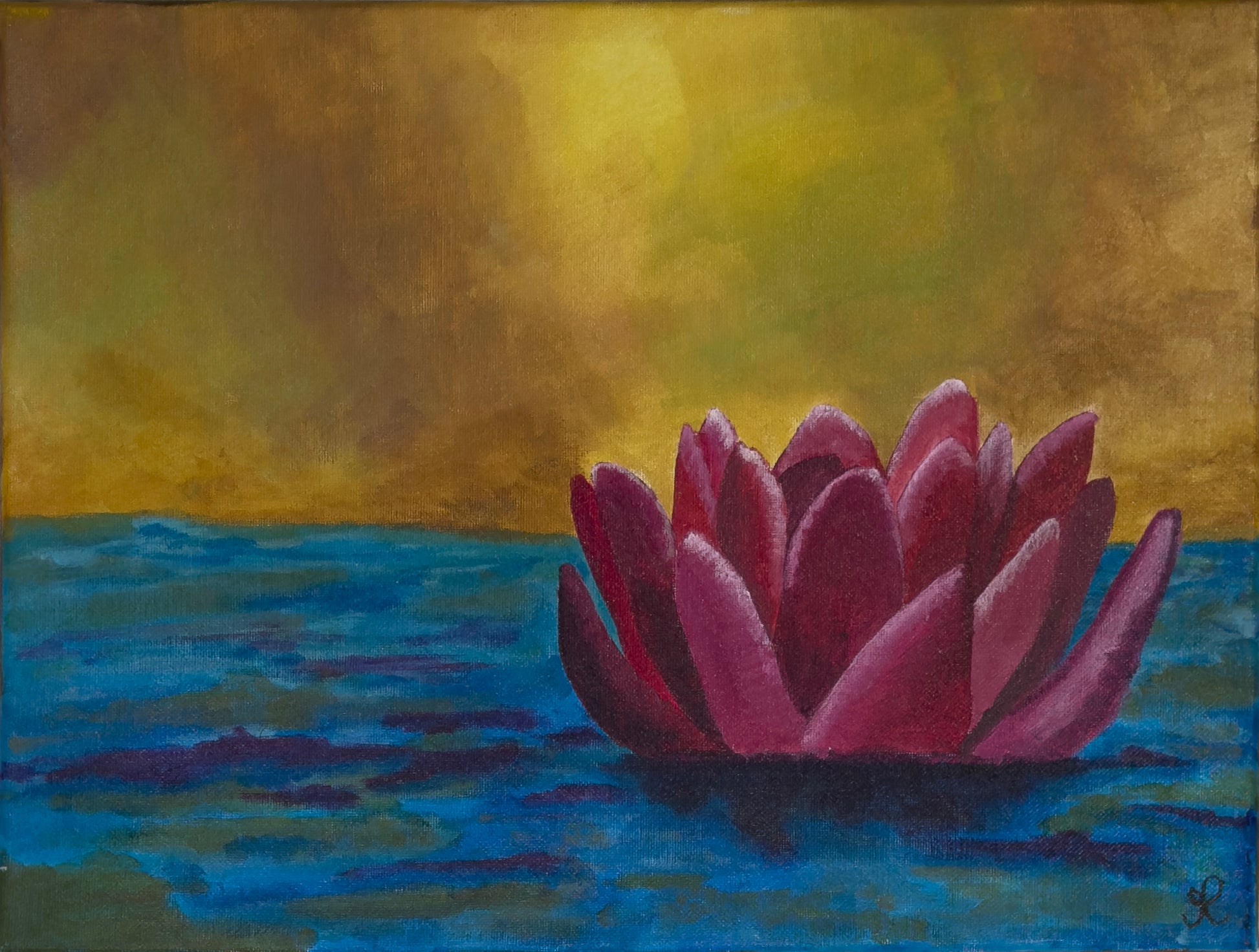 In a world of endless blue, a single seed dared to reach for a light it had never seen, climbing through the cold silence of the depths until it pierced the surface to find a sky of liquid gold. As its petals unfurled in vibrant magenta, the lotus became a bridge between two realms, standing as a solitary witness to the harmony of the elements. It learned that beauty does not require a garden to flourish—only the courage to rise from the shadows and the stillness to reflect the radiance of a sun-drenched horizon.